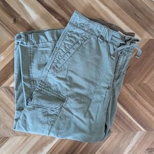 Vintage Y2K, 2000s. Low-rise sage green capri cargo pants from Polo Jeans Company Ralph Lauren, a versatile addition to your casual wardrobe. These pants feature a comfortable drawstring waist, offering an adjustable fit. The design includes classic cargo styling with multiple pockets, a utilitarian look. Pair with a tank and your favorite chunky sandals for the perfect 2000s look.