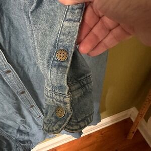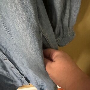 Keywords: LL Bean, denim dress, shirt dress, midi dress, button front, long sleeve, casual dress, workwear, everyday, classic, versatile, cotton, womens size 16, modest, vintage, tunic dress, prairie, cottagecore, pockets, chore, farm,