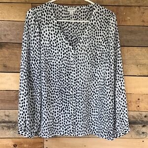 J Crew Size 4 Women’s Long Sleeve V-Neck Print Pullover Blouse 100% Polyester