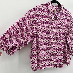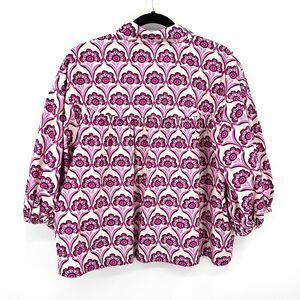 NWT ANTHROPOLOGIE Maeve Purple White Zooey Bubble Sleeve Pleated Crop Blouse XL