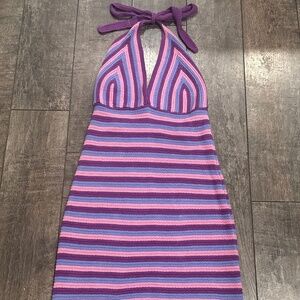 Wild Fable Knit Pink & Purple Striped Halter Dress