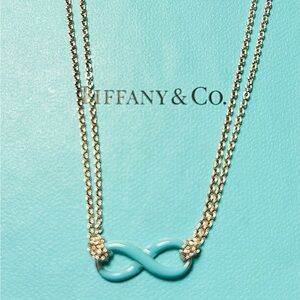 Tiffany & Co. 💯% Auth Turquoise Enamel Infinity Necklace w/Pouch ✨EUC✨