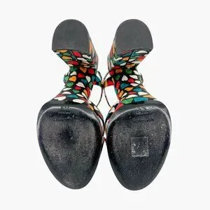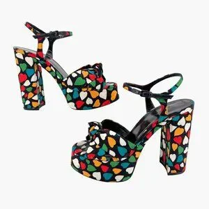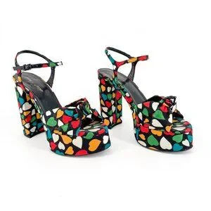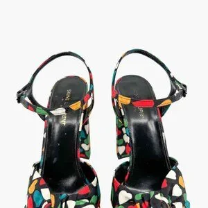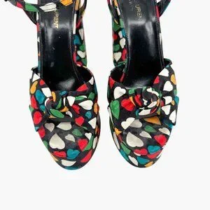 Saint Laurent Bianca Platform Sandals Size 38.5 US 8.5 Multicolor Heart Satin