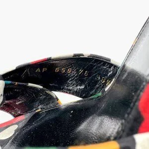 These Saint Laurent Bianca Platform Sandals bring a playful yet sophisticated flair to any look. Crafted from luxurious black satin, they feature a vibrant multicolored heart pattern that adds a bold pop of color. The elegant knotted strap detail and open round toe create a chic, feminine silhouette. Designed with a secure ankle strap and buckle closure, these sandals offer both style and support. The high block heel and chunky platform provide added height without compromising comfort. Finished with a premium leather footbed, lining, and outsole, they’re perfect for special occasions, nights out, or adding a statement touch to evening wear or party looks.
