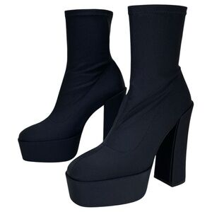 Stuart Weitzman Skyhi 145 Stretch Fabric Platform Womens Sock Bootie Size 8M