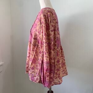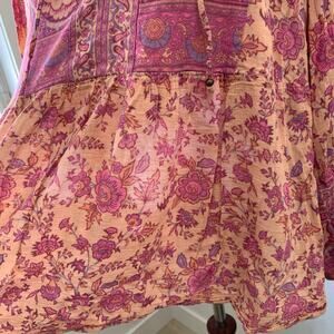 Spell & The Gypsy Top sz Large Folk Song Blouse Boho Floral Pink Keyhole Hippie