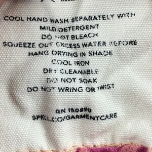 There is a bleached or faded spot at the front, as shown in photos 7, and can be seen pretty clearly in photos 9 & 10 as well. If you tuck the blouse in like the model photos show, you wouldn't be able to tell. :) Priced accordingly.