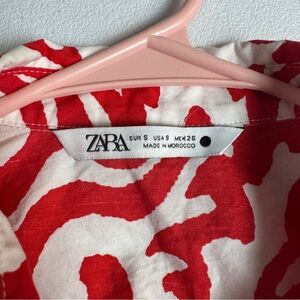 Zara Button Down Poplin Top Womens S Small Red White Long Sleeves