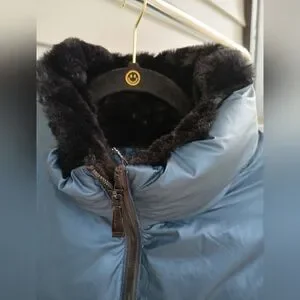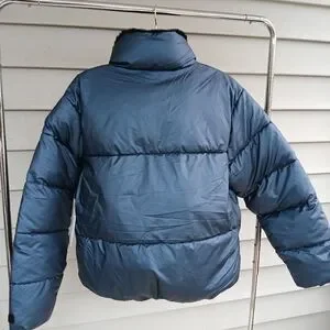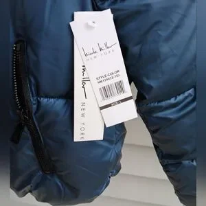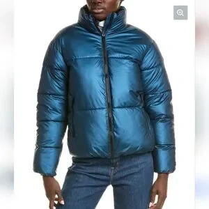 Nicole Miller NY Cropped Puffer Jacker Metallic Blue Various Sizes