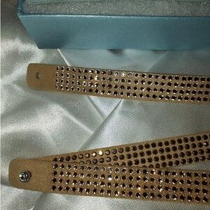 Authentic Touchstone Crystal by Swarovski leather wrap bracelet components, featuring factory-set Swarovski crystals on premium leather straps. This curated lot includes both crystal-embellished and blank coordinating leather straps, offering versatility for redesign, customization, or resale.