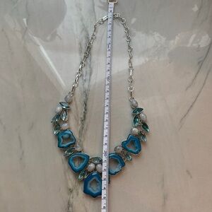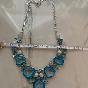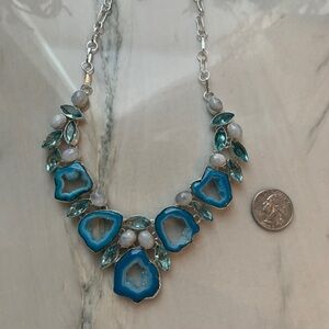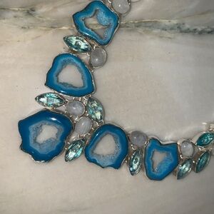 Enhance your style with this exquisite blue agate necklace, beautifully set in a silver design. A perfect accessory for any occasion. Silver plated.