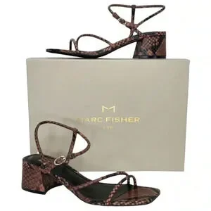 Marc Fisher LTD Womens Sandal 8.5M Jiny2 Brown Snake Print Block Heel