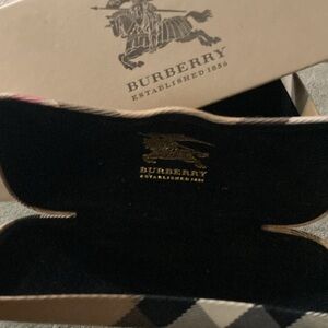 Classic Burberry clam glasses case with black velvet interior (case only). This case is new, never been used. Comes in the original Burberry box.