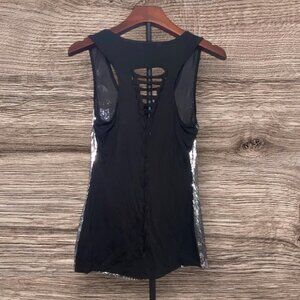 Silver Sequin Tank Top With Open Back Design Womens Size Small