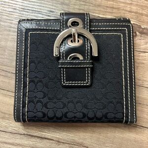 Coach Signature Canvas with Leather Trim & Buckle Compact Black Wallet
