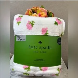 NWT Kate Spade New York Full Queen Plush Blanket Ditsy Rose Floral Blanket
