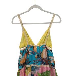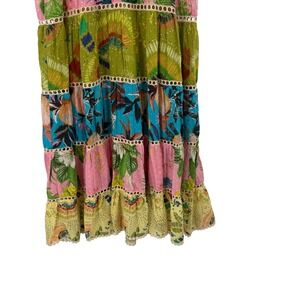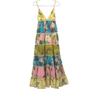 Farm Rio Flowerful Birds Plunge Tropical Maxi Dress Tiered Embroidered Strappy