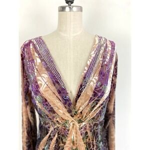 Vintage Y2K Boston Proper Top L Boho Glam Velvet Burnout Beaded V-Neck Fairy