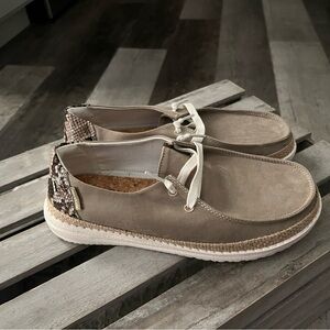 HEY DUDE Casual Tan Loafers w/snakeskin print - NWT