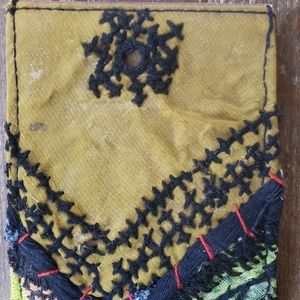 Made from vtg recycled garment remnants missing mirrors/embellishments, loose threads stitching embroidery stains Marks all part of the imperfectly perfect aesthetic. Small wallet pls see pic w/dims..for credit/debit cards/ids/& some $whatever currency ur travels take u.each is different so pls be sure to look at all pics carefully