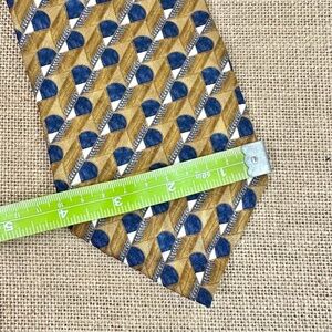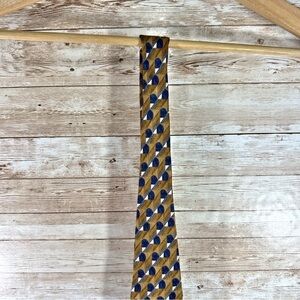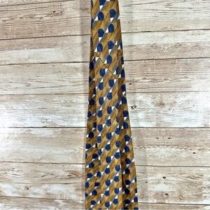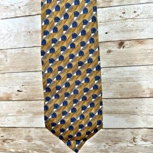 Vintage- Gold/Blue Print 100% Silk Men's Tie- USA Made