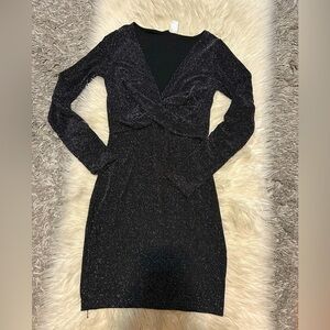 Black Glitter Long Sleeve Dress