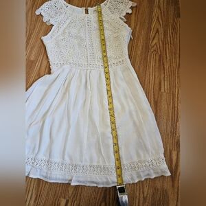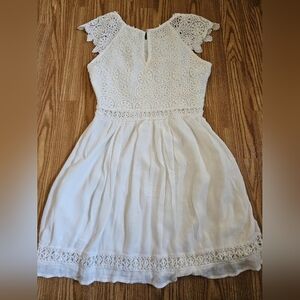 Hollister women’s dress, size 3, in a soft beige color. Features a beautiful lace design on the top and a side zipper for easy fit. Elegant and feminine style, perfect for parties, casual outings, or special occasions. Comfortable and flattering silhouette.