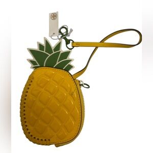 Tory Burch Pineapple Coin Purse, Wristlet, Bag Charm, Key Fob. Yellow Multi BNWT