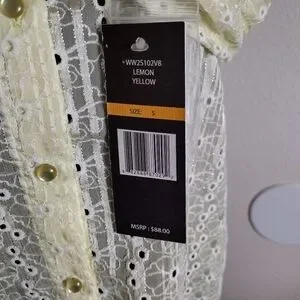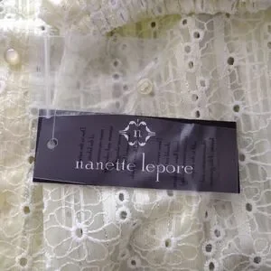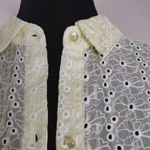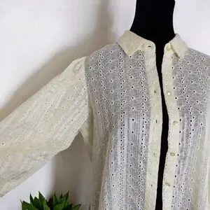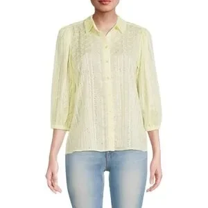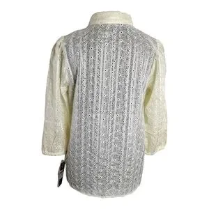 Nanette Lepore Eyelet Embroidery Blouse Three qtr Sleeve Pale Yellow Small