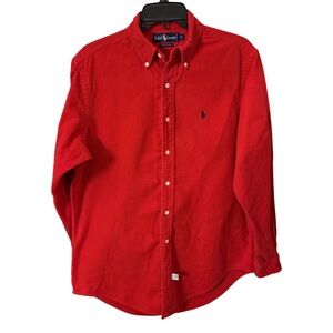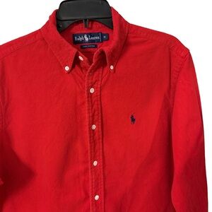 Excellent like new condition. Men’s Ralph Lauren button down red shirt. 100% cotton, button down collar, long sleeves, white buttons, embroidered pony logo. Size medium see photos for measurements MSRP $130