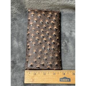 Ostrich Skin Wallet Mens Brown Bifold Checkbook Credit Card Holder Western