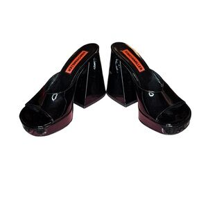 Simon Miller Slice Heel Platform Slide Sandals in black patent leather sz 36