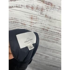 Cinq a Sept Dress Women's 8 Navy Halter Cowl Neck Silk Top Open Back Slit Gown