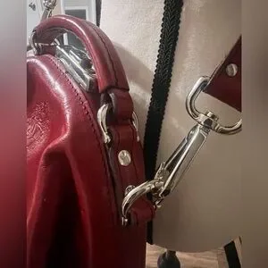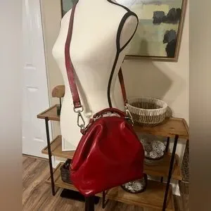Cécile & Jeanne Paris Red Leather Vintage Doctor Bag Top Handle Crossbody Chic