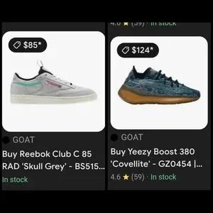 Yeezy Boost 380 'Covellite' + Reebok Club C 85 RAD 'Skull Grey sz 9.5 lot