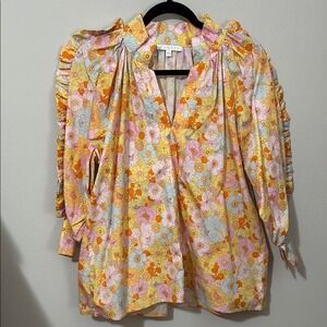 Karlie Women's Large London Floral Poplin Ruffle Sleeve Top 3/4 Length Sleeves