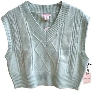 This is a Brand New (NWT) Sincerely Jules V-Neck Cable Knit Light Mint Green Crop Vest. It is in Excellent Condition (See Photo’s).