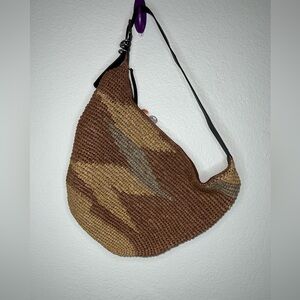 Features: Slouchy silhouette, adjustable shoulder strap, raffia and pebble grain leather, zip entry, interior slip pocket