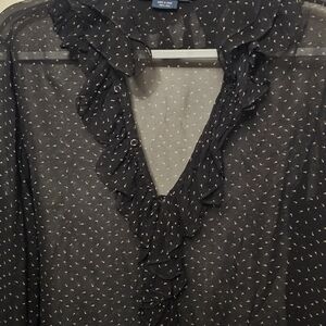 Ralph Lauren Blue Label 100% Silk Ruffle Blouse Black Sheer Paisley Sz 6