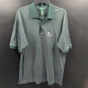 Hugo Boss Polo Shirt Mens Green Large Regular Fit Striped Golf Casual