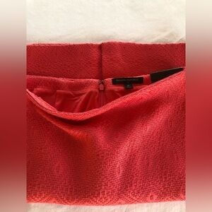 Beautiful new coral coloured thick textured fabric pencil skirt. Back has a zipper closure. Back x tacking at slit has not been cut yet.