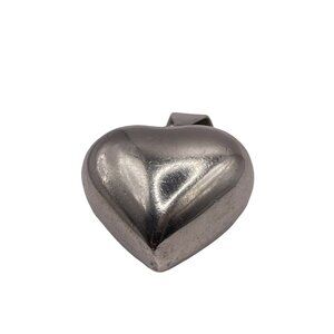 Vintage Taxco Mexico Puffy 3D Hollow Heart Pendant Charm 925 Sterling Silver