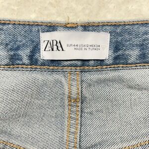 Zara Wide Leg Barrel Jeans Women's Cropped 12 Baggy Bohemian Coastle Raw Hem