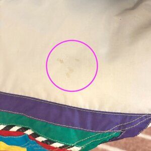 Step back into the bold style of the late 80s/early 90s with this vibrant vintage ski jacket! Featuring an iconic red, pink, yellow, green, purple and blue abstract geometric design on a white background, this piece captures everything we love about retro outerwear — playful colors, boxy fit, and cozy warmth.