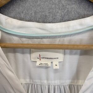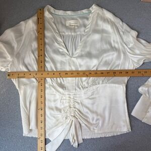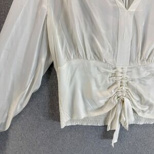 Anthropologie Blouse Long Sleeve V Neck Ruched Tie Front Ivory Womens Size XL