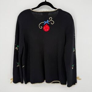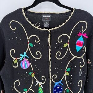 Designs Originals Studio Joy VTG Embroidered Christmas Sweater Cardigan MEDIUM