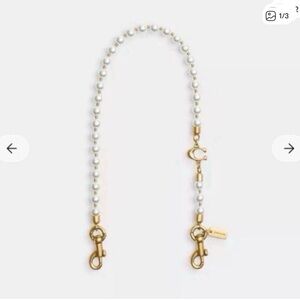Coach bag strap with white pearls and gold hardware. Perfect for accessorizing bags.