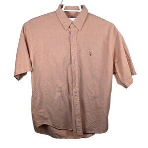Vintage Ralph Lauren Mens Large Pink Blake Cotton Short Sleeve Button Up Shirt