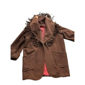 Vtg Women's Spiegel Sz 14 Brown Fringed Coat USA UNION MADE Western Look Pockets