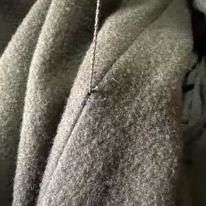 Defect spot on one cuff notes. See photo. Line of discoloration on left lapel. Scarf or a broach could cover it up. Area of missing sewing at seam of lapel.